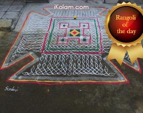 This rangoli is drawn for a rangoli competition held in my apartment.