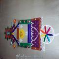 This rangoli depicts the Thiruvannaamalai temple tower, Lord Ganesha and Saint Arunagirinathar...