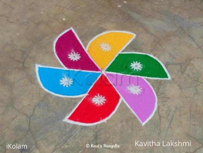 A simple 5-3 inter dots kolam with different colours drawn for holi festival 2026