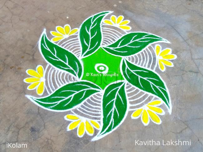 5-3 inter dots leaf & flower simple rangoli drawn by me for 2026 tamil new year