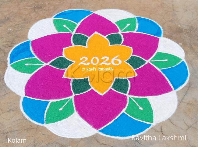 Bright and colourful rangoli in 5-3 interlaced dots drawn by me for welcoming this new year 2026