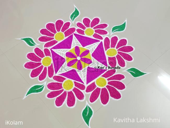 Navaratri 2025Day 9 - Pink colour5-3 inter dots flowers kolam