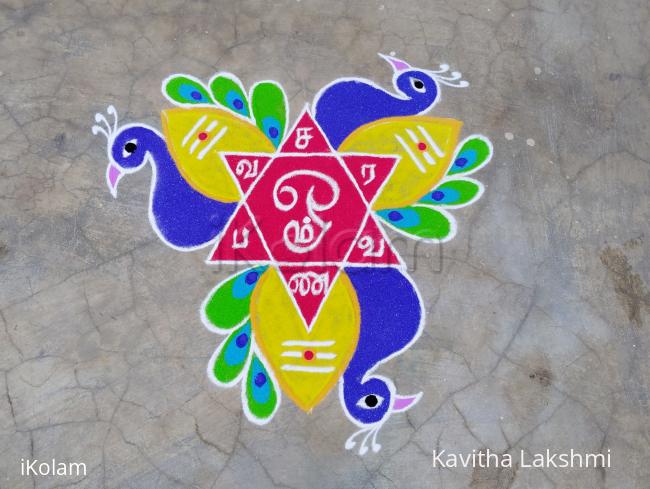 தைப்பூசம் ஸ்பெஷல்- வேலும் மயிலும் இணைந்த கோலம்5-3 இடைப்புள்ளி