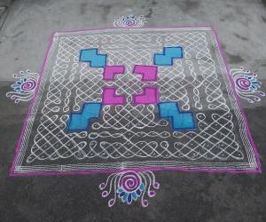 Rangoli is an Indian folk art drawn on the floor with rangoli powders or paste. Rangoli is regionally known as Kolam in Tamilnadu, Muggulu in Andhra Pradesh, and Rangavalli in Karnataka. There are hundreds of rangoli designs in iKolam, created by members from all over the world. Here are the some of the latest rangolis: