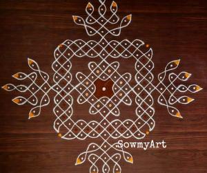 Rangoli is an Indian folk art drawn on the floor with rangoli powders or paste. Rangoli is regionally known as Kolam in Tamilnadu, Muggulu in Andhra Pradesh, and Rangavalli in Karnataka. There are hundreds of rangoli designs in iKolam, created by members from all over the world. Here are the some of the latest rangolis: