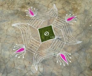Rangoli is an Indian folk art drawn on the floor with rangoli powders or paste. Rangoli is regionally known as Kolam in Tamilnadu, Muggulu in Andhra Pradesh, and Rangavalli in Karnataka. There are hundreds of rangoli designs in iKolam, created by members from all over the world. Here are the some of the latest rangolis:
