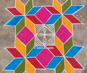 Rangoli is an Indian folk art drawn on the floor with rangoli powders or paste. Rangoli is regionally known as Kolam in Tamilnadu, Muggulu in Andhra Pradesh, and Rangavalli in Karnataka. There are hundreds of rangoli designs in iKolam, created by members from all over the world. Here are the some of the latest rangolis: