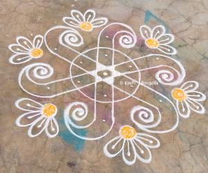 Rangoli is an Indian folk art drawn on the floor with rangoli powders or paste. Rangoli is regionally known as Kolam in Tamilnadu, Muggulu in Andhra Pradesh, and Rangavalli in Karnataka. There are hundreds of rangoli designs in iKolam, created by members from all over the world. Here are the some of the latest rangolis: