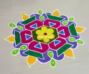 Rangoli is an Indian folk art drawn on the floor with rangoli powders or paste. Rangoli is regionally known as Kolam in Tamilnadu, Muggulu in Andhra Pradesh, and Rangavalli in Karnataka. There are hundreds of rangoli designs in iKolam, created by members from all over the world. Here are the some of the latest rangolis: