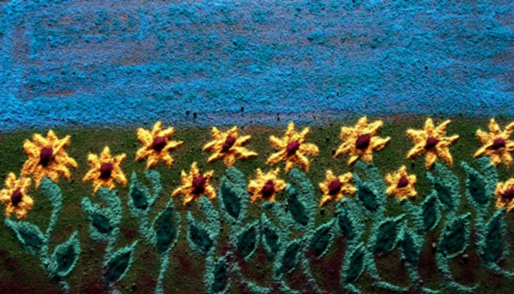 very colourful cration. But a small doubt.How is that your sunflowers are smiling in a dark night background????